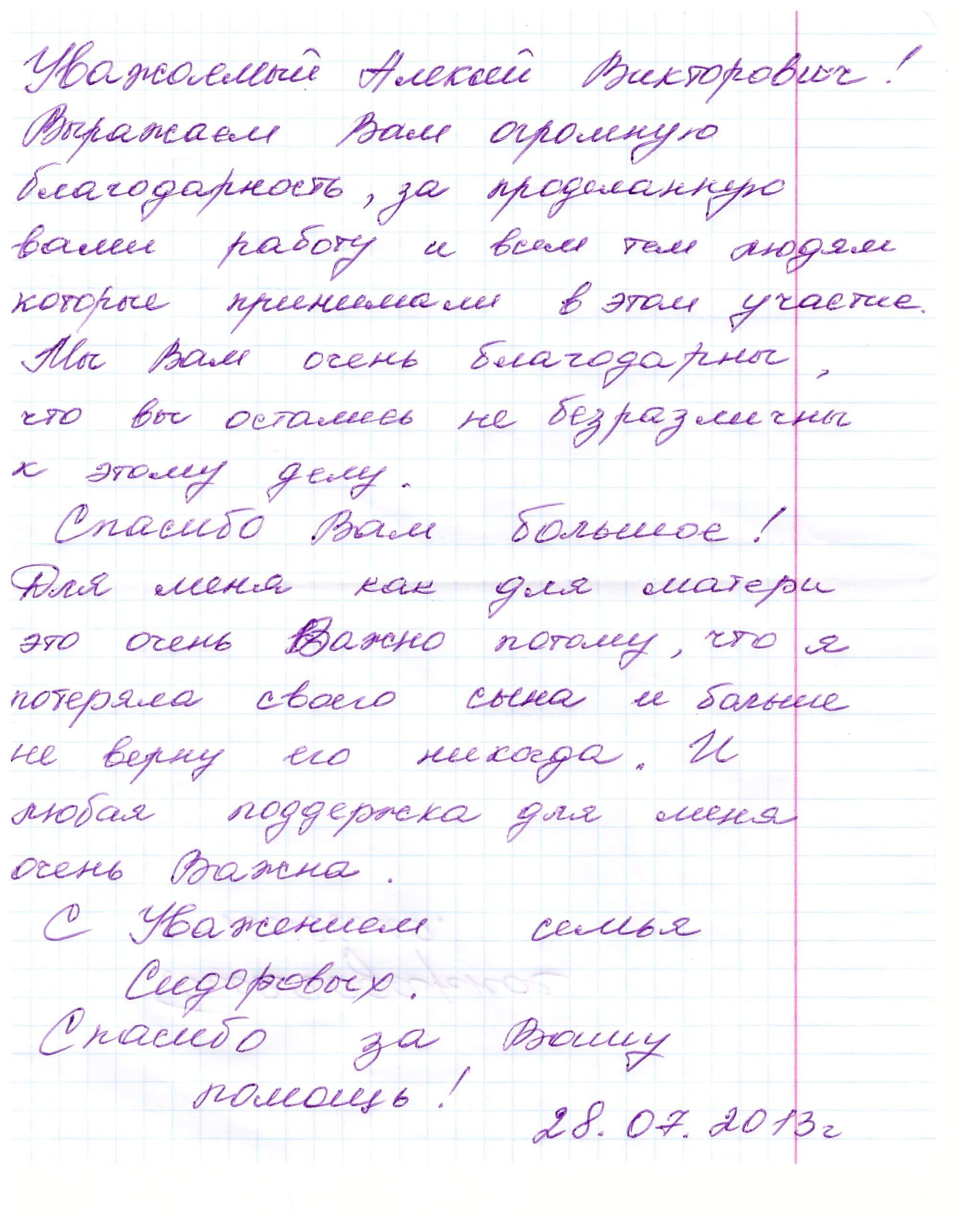 Спасибо вам огромное за помощь! Откликнулись и помогли. Нам, с сыном, очень пригодилась ваша помощь. - семья Сафоновых